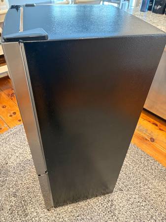 Insignia™ - 4.1 Cu. Ft. Mini Fridge with Bottom Freezer - Stainless Steel Refrigerator. Both refrigerator and freezer work great! Small crack and scratches on shelf of freezer. This was purchased from Best Buy in February 2021.