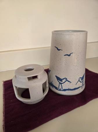 Vintage Sanibel Pottery candle/oil lamp canister in shape of lighthouse. A unique piece that adds a touch of nautical charm to any room. Stands nine inches high. Excellent condition with no chips,...