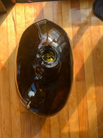 Dark green demijohn bottle in very good condition. 17"W x 19"H