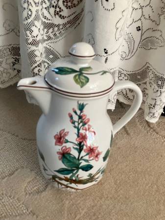 Here is a wonderful ceramic coffee pot with lid manufactured by Villeroy & Boch of the Botanical Collection. This sought after design coffee pot measures 8 1/2” tall with lid in place and has a 4” base diameter. There are no chips, cracks or evidence of repair. Shipping costs to you with your zip code provided. Please check my feedback and purchase with confidence!