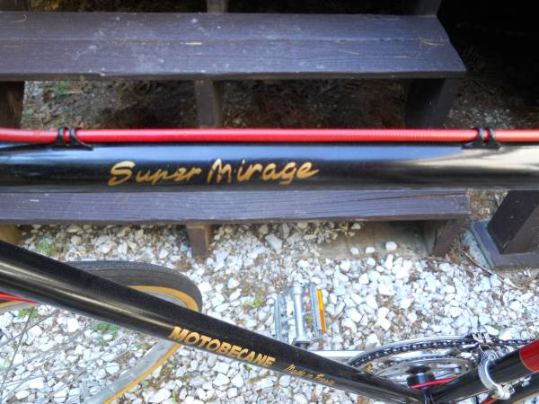 Motobecane Super Mirage ,road bike , French made frame fully lugged 2040 steel , stem shifting , 12 speed , size medium , excellent condition , like brand new , doesn't need any work , ready to go , $350 , call number in contact info , leave voice message , will call you back . I don't respond to texting , still available if showing