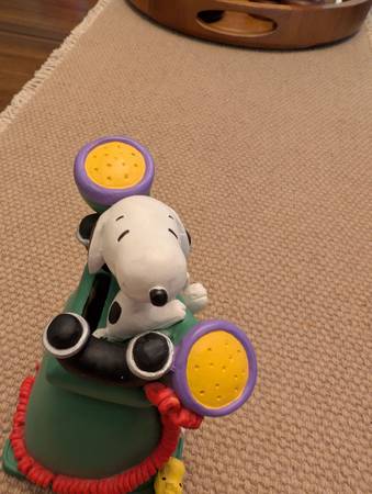 Bring home a delightful piece of Peanuts nostalgia with this vintage ceramic coin bank featuring Snoopy and Woodstock designed as a rotary telephone. This collectible is officially marked "UFS" (United Feature Syndicate) on the bottom, confirming its authenticity as licensed Peanuts merchandise