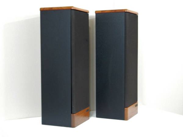 The 8-inch, long-excursion woofer, which operates in a sealed enclosure, is located in the middle of the front panel, with the driver’s center about 16 inches from the floor. At 3,000 Hz there is a crossover to a 3/4-inch, soft-dome tweeter (cooled and damped by ferrofluid) located near the top of the panel. The nominal system impedance is 6 ohms, with a minimum of 4 ohms. The rated sensitivity is 89 dB sound-pressure level (SPL) at 1 meter with a 2.8-volt input, and the speaker is recommended for use with amplifiers capable of delivering up to 75 watts continuous or 300 watts peak.