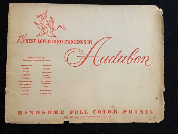 11out of 18 prints with original jacket of best loved birds. Additional 2 Currier and Ives prints : A Home in the Wilderness and American Homestead Autumn. Prints in good condition, jacket has wear...