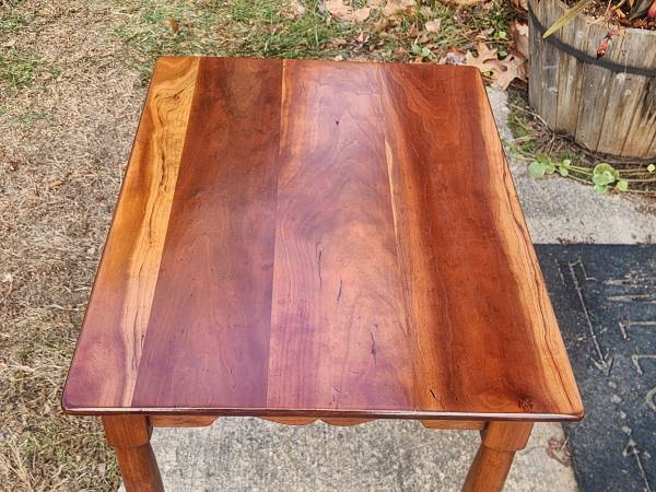 Great little vintage solid cherry Stickley side table with a scrolled apron and turned legs ending in pad feet. Dimensions: 24" long x 18" wide x 18.5" tall. $165 cash, fcfs, no holds.