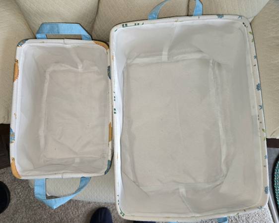 Dino World Cotton Storage Bins w/Handles in excellent condition - $5 for both 16" x 12" and 12" x 8.5"