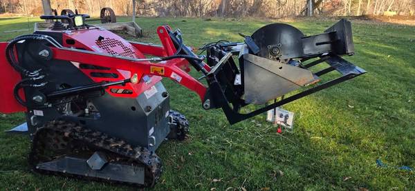 1 year old mini skid steer with Attachments 1 Stump grinder 2 Leveler and Grader 3 Grapple Grabber loader 4 auger 5 and bucket