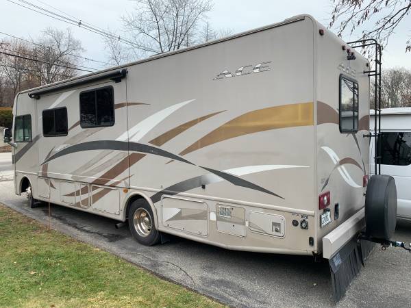 2013 THOR ACE CLASS A DOUBLE SLIDE 30 FOOT MOTOR HOME DRIVES AND SOUNDS GREAT . HAS DASH AIR AND ROOF TOP AIR CONDITIONER . IT IS ON A FORD CHASSIS WITH A V-10 MOTOR WITH 56,000 MILES THE REAR BEDROOM SLIDE WITH A WALK AROUND QUEEN SIZED BED MAKES FOR AN EXCEPTIONALLY SPACIOUS INTERIOR . ALSO HAS A BED THAT DROPS DOWN AUTOMATICALLY FROM THE CEILING ABOVE THE DRIVERS SEAT .THE KITCHEN HAS A OVEN , MICROWAVE , STOVE , REFRIGERATOR AND KITCHEN SINK. BATHROOM HAS A SHOWER, VANITY SINK AND SEPARATE COMODE . ALSO HAS A THERMOSTATICALLY CONTROLLED FURNACE , 4000 ONAN GENERATOR AND WATER HEATER. COMES EQUIPPED WITH A POWER AWNING , LEVELING JACKS AND BACK UP CAMERA . PLENTY OF STORAGE IN THE AMPLE EXTERIOR COMPARTMENTS . PRICE IS $14,995 . CALL 978 807 0174 STEVE...