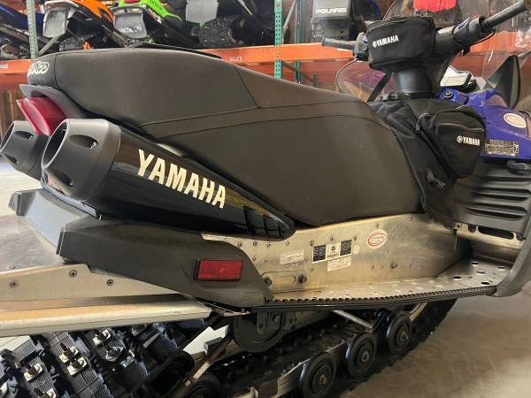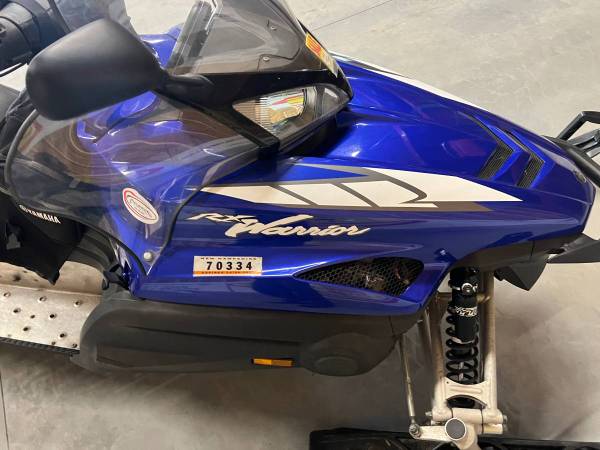 2005 Yamaha RXWarrior RX Warrior electric start reverse with 6763 miles. GYTR front suspension. Mountain mods seat, fuel tank bag and handlebar bag. Studded track Aaen 4-Star primary clutch and a Team TwinTrax secondary clutch. Very clean snowmobile.