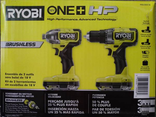 Kit PBLCK01K Includes: (1) PBLDD01 18V ONE+ HP Brushless 1/2 in. Drill/Driver, (1) PBLID01 18V ONE+ HP Brushless 1/4 in. Impact Driver, (2) PBP003 18V ONE+ HP 2.0 Ah High Performance batteries, charger, tool bag, and operator's manuals