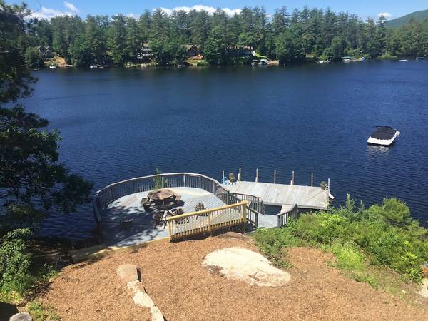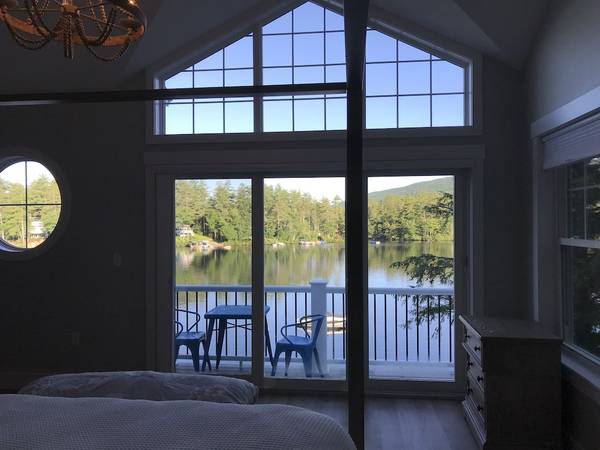 Stunning brand new home in quiet Hanson Cove of Lake Winnipesaukee. Sleeps 9. The house has an open concept kitchen/dining/living room, 4 bedrooms, and 3.5 baths. It features two master bedrooms, one on the main level and one on the second floor that has its own balcony. Two additional bedrooms on the second floor. Three season porch and decks have great water views. There is a large dock with deep water docking for up to a 25' boat. Sunset views complete the package in this quiet setting.