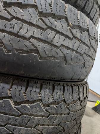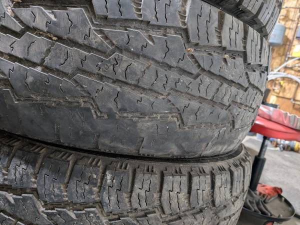 set of 215/70/R16 Nokian AT's. 3 have decent tread, one has gnarly camber wear. They're old and have some cracks, but maybe you have a shitty old plow that needs rubber. Have at em.