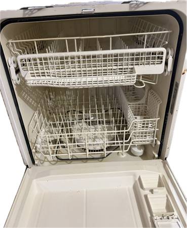 Kenmore model 665 dishwasher. Dishwasher works and cleans. Has a minor stained base( see photo) some of the racks have paint worn and little bit of rusting. Works fine and runs quietly. Will need to be hardwired into electrical( does not have a 12v socket )