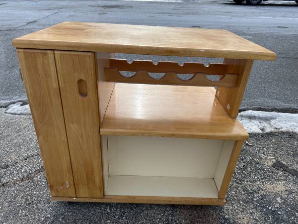 Dimensions 36"L x 21"W x 33H. Fair condition, dings, dents. Two of the casters and one tall door broke off when moving. Still a solid piece with decent storage.